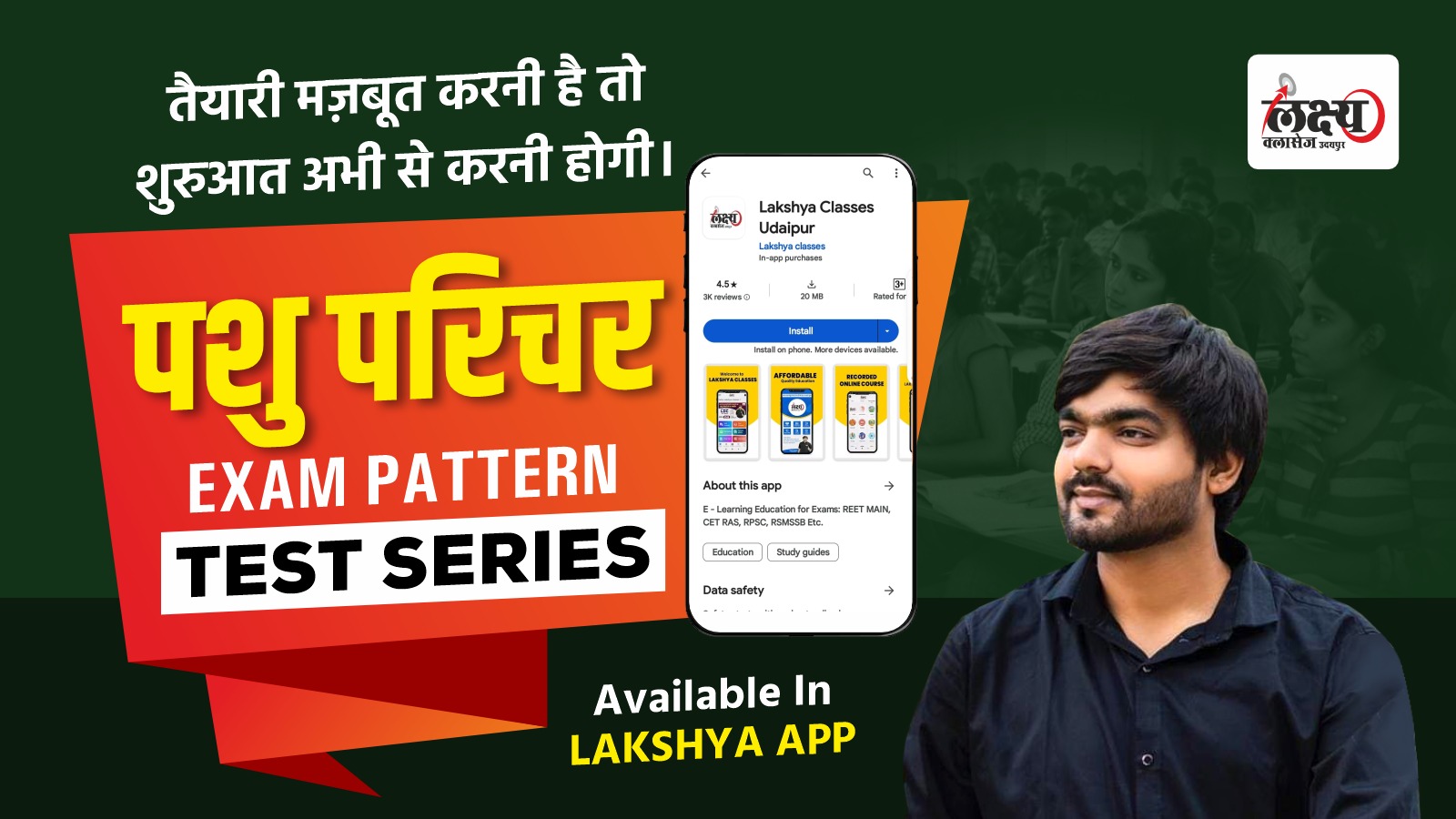 प्रिय विद्यार्थियों, राजस्थान अधीनस्थ एवं मंत्रालयिक सेवा चयन बोर्ड (RSMSSB) Pashu Parichar सीधी भर्ती परीक्षा की तैयारी को अधिक प्रबल व बेहतर बनाने के लिए लक्ष्य क्लासेस Pashu Parichar पाठ्यक्रम पर आधारित 10 एग्जाम पैटर्न टेस्ट सीरीज लेकर आया है।
