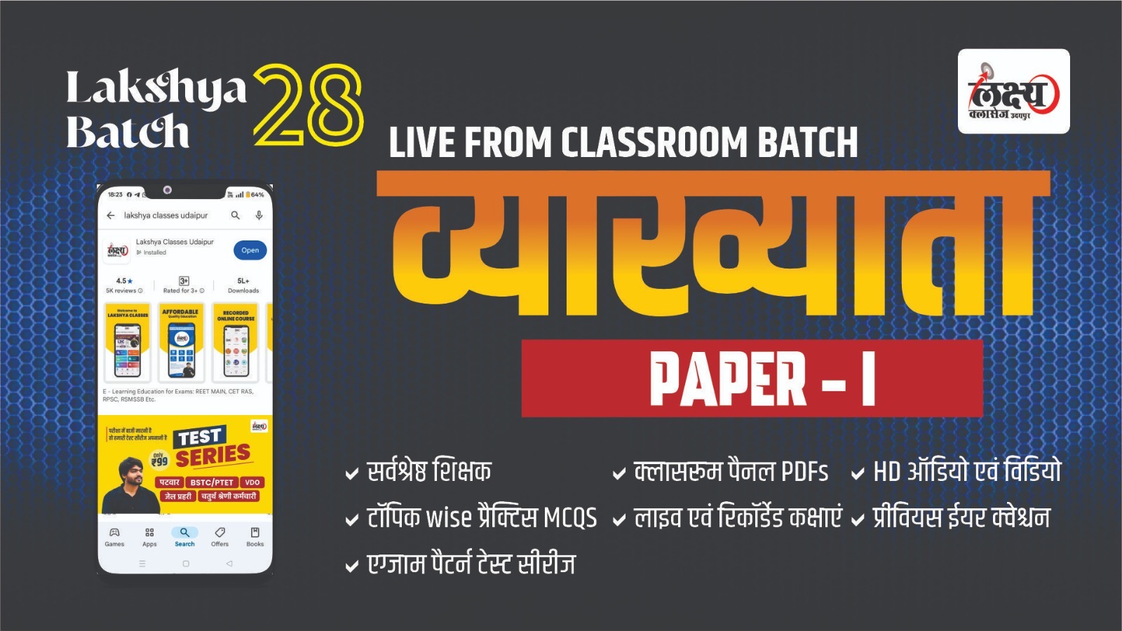 उदयपुर का सर्वश्रेष्ठ शिक्षण संस्थान लक्ष्य क्लासेज उदयपुर लाया है अपने अनुभवी एक्सपर्ट शिक्षकों के नेतृत्व में 1st Grade 1st Paper G.k. हेतु विशेष बैचेस इन कक्षाओं का आयोजन से किया जा रहा है एवं परीक्षा होने तक इन कक्षाओं का नियमित रूप से आयोजन किया जाता रहेगा।। इन बैचेस के माध्यम से आपको मिलेगा -